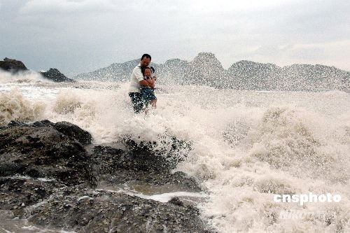 08年9月28日,受超強(qiáng)臺(tái)風(fēng)“薔薇”影響,浙江溫州市洞頭島海域已是波濤洶涌,海礁上掀起的巨浪高達(dá)10多米。下午2時(shí)許,一對(duì)外地父女在海邊游玩時(shí)不慎被突漲的潮水困在礁石上,隨時(shí)可能被海浪吞噬。正在海邊巡邏的洞頭邊防大隊(duì)官兵發(fā)現(xiàn)險(xiǎn)情后,迅速展開(kāi)緊急營(yíng)救,成功將父女從海浪中安全救上岸。