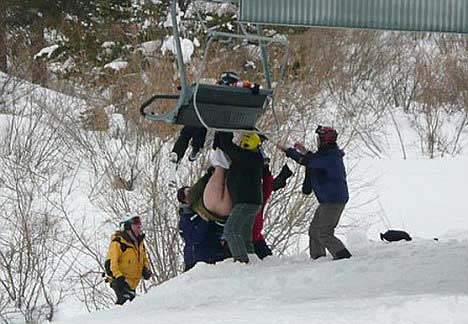 1月6日,美國(guó)科羅拉多一處滑雪場(chǎng)日前上演了一出尷尬場(chǎng)面。一名男子在上纜車時(shí),因座椅故障,整個(gè)人頭朝下翻轉(zhuǎn)了下來(lái),所幸他的雪橇將他卡在纜車上,沒(méi)有掉下來(lái)。但是令人尷尬的是,他的褲子被扯下來(lái),整個(gè)下半身暴露在冰雪寒風(fēng)中,直到15分鐘后才有工作人員將他救下來(lái)。
