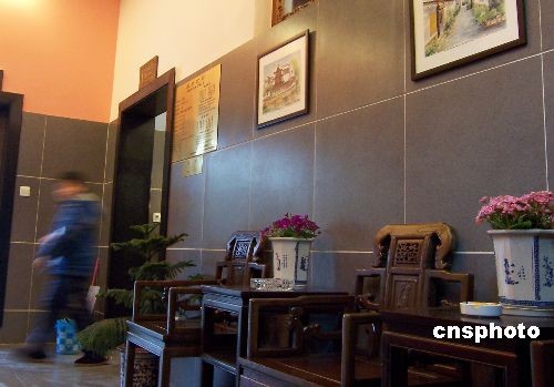 南京夫子廟四星級(jí)豪華公廁廳堂擺放著仿紅木太師椅。中新社發(fā) 王啟明 攝
