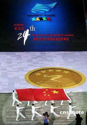 2月18日,第24屆世界大學(xué)生冬季運(yùn)動會開幕式在哈爾濱國際會展中心體育館隆重舉行!氨⑶啻、未來”,哈爾濱大冬會在熊熊圣火的映襯下揭開大幕,在未來10天內(nèi)來自45個(gè)參賽代表團(tuán)青春洋溢的冰雪健兒們將在賽場上展開競逐!本屆大冬會是中國首次承辦世界綜合性冬季體育盛會,也是繼北京奧運(yùn)會和殘奧會后中國又一次承辦的國際性賽事。中新社發(fā) 富田 攝
