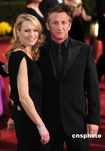 本屆影帝最大熱門肖恩·潘攜妻子羅賓·懷特一同走過紅地毯。中新社發(fā) 張煒 攝