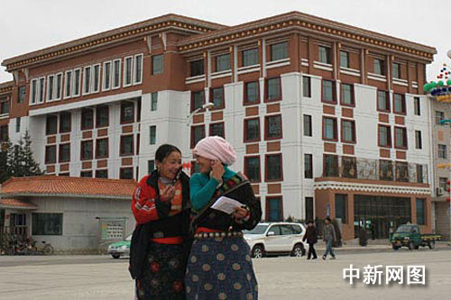 中新網(wǎng)2月24日電 2月24日,兩名藏族群眾從甘南藏族自治州合作市一棟藏式建筑前經(jīng)過。這座高原羚城對(duì)全市28棟新建、續(xù)建、擴(kuò)建建筑物進(jìn)行了民族特色風(fēng)貌式樣控制和改造,還將民族特色化建設(shè)延伸和輻射到農(nóng)牧村,力爭(zhēng)把草原新城合作市打造成甘肅、青海、四川藏區(qū)一流的民族文化特色城市。