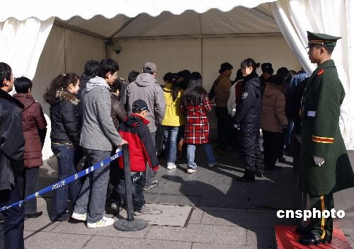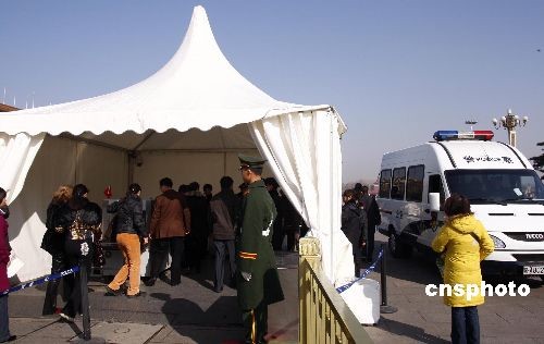 2月27日,全國(guó)“兩會(huì)”即將召開,北京天安門廣場(chǎng)加強(qiáng)安檢工作。中新社發(fā) 鄭雄增 攝