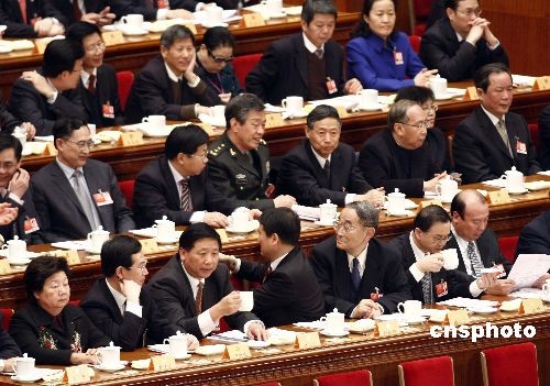 3月3日,全國政協(xié)十一屆二次會議在北京人民大會堂開幕,委員們在會議開幕前交流。中新社發(fā) 盛佳鵬 攝
