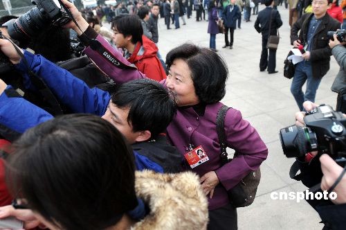 3月3日,愛好攝影的全國政協委員、浙江省政協副主席盛昌黎,在全國兩會期間“機不離身”,隨時準備拍攝身邊發(fā)生人和事。圖為盛昌黎委員正在和記者“搶拍”。中新社發(fā) 宋健浩 攝