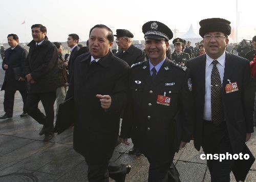 3月5日上午,十一屆全國人大二次會(huì)議在北京人民大會(huì)堂開幕,來自新疆的全國人大代表、喀什市公安局黨委副書記努爾拉·阿尤甫與其他代表一起步入會(huì)場(chǎng)。中新社發(fā) 盛佳鵬 攝
