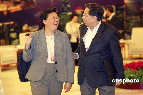 3月6日,十一屆全國(guó)人大二次會(huì)議舉行小組會(huì),審議政府工作報(bào)告。圖為全國(guó)人大代表范徐麗泰在參會(huì)時(shí)與其他代表交談。中新社發(fā) 盛佳鵬 攝