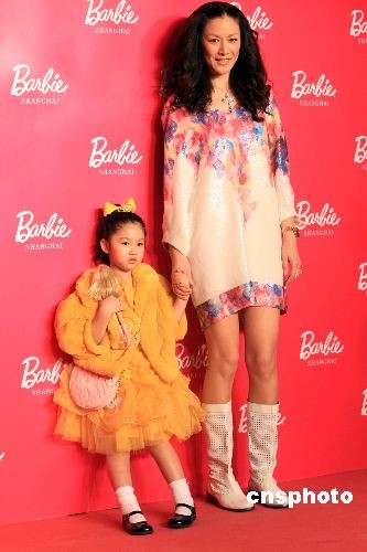 3月6日,名模琦琦攜女兒在上海出席芭比全球首家旗艦店——“芭比上!遍_幕盛典。當日,眾多明星云集“芭比上!,為芭比50周年慶生。中新社發(fā) 湯彥俊 攝