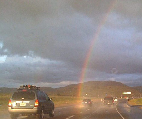 彩虹的“尾巴”。一名美國(guó)男子幸運(yùn)的用手機(jī)拍下了彩虹盡頭的照片。這位男子名叫杰森·埃德卡姆普,是一名業(yè)余攝影師。09年2月7日,他駕車行駛在高速公路上的時(shí)候,幸運(yùn)的捕捉到了彩虹的“尾巴”。