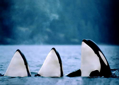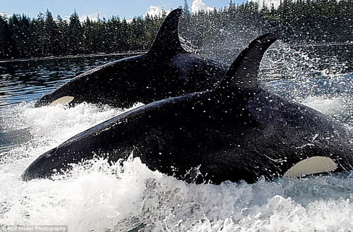 殺人鯨水中群舞。攝影師奧爾夫-希克在加拿大溫哥華附近海域拍下了三頭野生殺人鯨(學(xué)名為虎鯨)在水中群舞的照片。