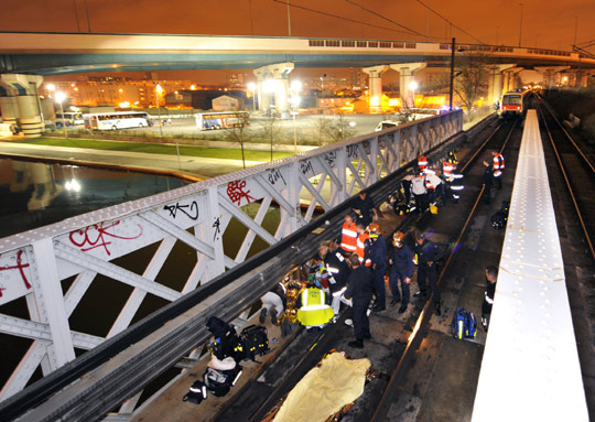 中新網(wǎng)3月8日電 當(dāng)?shù)貢r(shí)間7日22時(shí)30分,巴黎北部郊區(qū)發(fā)生火車(chē)撞人事件,目前已有2人死亡,11人受傷。調(diào)查人員稱(chēng),事故發(fā)生在法國(guó)大體育館附近。當(dāng)時(shí),一群法甲里爾隊(duì)的球迷正試圖通過(guò)一條高速路上方的鐵路高架橋,以返回大巴。沒(méi)想到被隨后駛來(lái)的城鐵撞上。