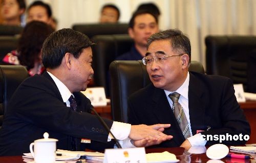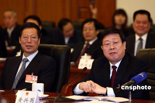 3月9日,全國(guó)人大天津代表團(tuán)在人民大會(huì)堂舉行全團(tuán)會(huì)議,天津市委書記張高麗、天津市長(zhǎng)黃興國(guó)出席會(huì)議。中新社發(fā) 杜洋 攝