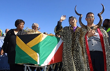 目前狀況:從上世紀(jì)80初年代開始,南非人就要求將莎拉的遺體歸還南非;迫于社會(huì)各界的輿論壓力,人類博物館最終將遺體撤出展臺(tái)。1992年,尼爾森·曼德拉(Nelson Mandela),當(dāng)時(shí)的南非總統(tǒng),發(fā)出了要求歸還遺體的正式要求,但還是等待了十多年,法國才歸還了遺體。2002年 8月9日,她終于安葬在南非的故土。