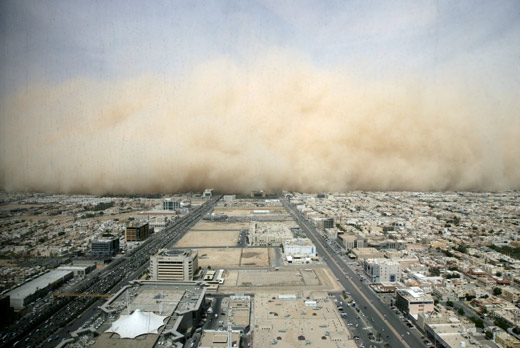 3月10日,沙特阿拉伯首都利雅得遭遇沙塵暴天氣,到處都是滾滾黃塵。沙特氣象部門稱,這次沙塵暴的強度達到了20年來的頂峰。