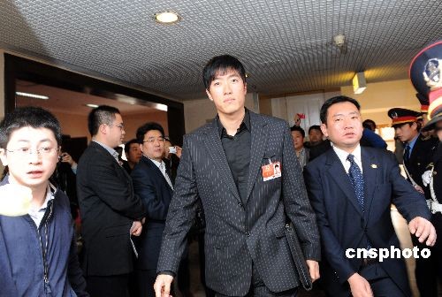 3月11日上午,全國政協(xié)體育界別委員駐地,劉翔準(zhǔn)備進(jìn)入會(huì)場參加小組討論。這是劉翔當(dāng)選全國政協(xié)委員兩年來首次參加小組討論。