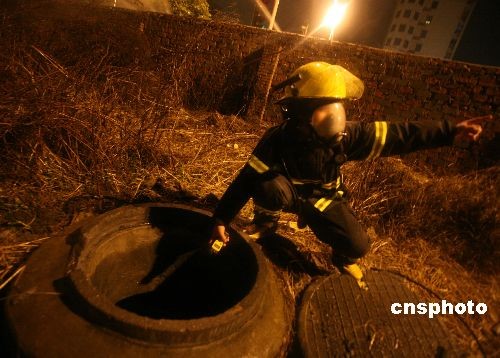 圖為堵漏成功后消防官兵利用消防測爆儀對泄漏點進行檢測。中新社發(fā) 袁帆 攝