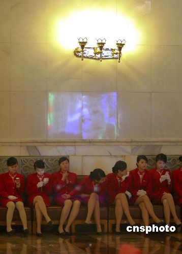 3月12日,全國政協(xié)十一屆二次會(huì)議舉行閉幕大會(huì)。大會(huì)開始前,服務(wù)人員在人民大會(huì)堂的椅子上休息。中新社發(fā) 盛佳鵬 攝