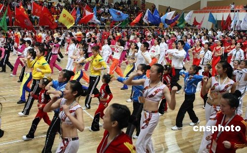 圖:全國(guó)萬(wàn)人健美操總決賽在北京開(kāi)幕(2)
