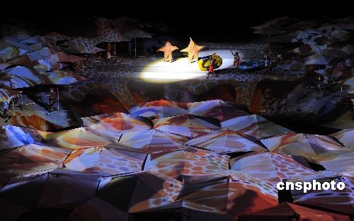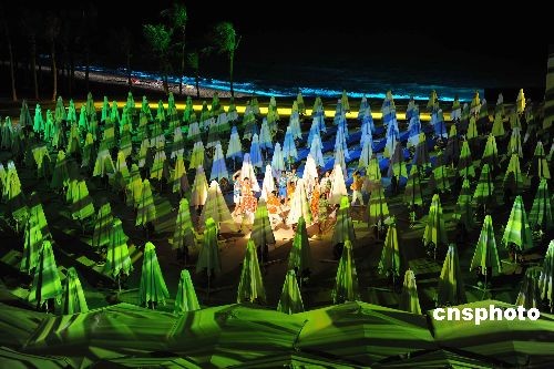 由張藝謀、王潮歌和樊躍“鐵三角導(dǎo)演”共同指導(dǎo)的大型實(shí)景演出——《印象海南島》,于3月16日晚在海南省?谑械挠∠髣(chǎng)首次對(duì)外試演!队∠蟆ずD蠉u》試演近一個(gè)月,再經(jīng)過(guò)修改及完善,于4月中旬舉行的博鰲亞洲論壇期間正式公演。《印象·海南島》演出長(zhǎng)70分鐘,印象劇場(chǎng)可容納1600名觀眾,230名男女演員平均年齡19歲,都是在海南島經(jīng)過(guò)嚴(yán)格選拔的。