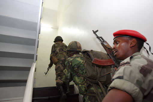 16日晚約7時,武裝部隊向位于市中心一座山上的總統(tǒng)府發(fā)起攻擊,首先發(fā)射了兩枚火箭彈,并鳴槍警告總統(tǒng)府守衛(wèi)部隊,隨后用擴音器朝守衛(wèi)部隊喊話。