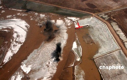 積冰區(qū)濃煙滾滾,冰花四濺。中新社發(fā) 尤中原 攝