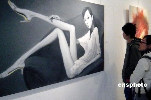 3月22日,位于北京朝陽區(qū)的798藝術(shù)區(qū)內(nèi)中外游客絡(luò)繹不絕。作為中國當(dāng)代藝術(shù)文化展示園區(qū),這里匯集了中國當(dāng)代藝術(shù)家不同門類、派別、風(fēng)格的多元化藝術(shù)作品,呈現(xiàn)出百家爭鳴的繁榮景象。圖為北京798藝術(shù)區(qū)繪畫作品吸引游客。中新社發(fā) 錢興強(qiáng) 攝