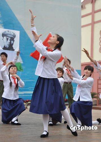 3月25日,長沙世界之窗舉辦的校服秀展示了新中國成立60年來不同時期的中小學生校服,勾起了不少市民孩童時的回憶。中新社發(fā) 肖前輝 攝