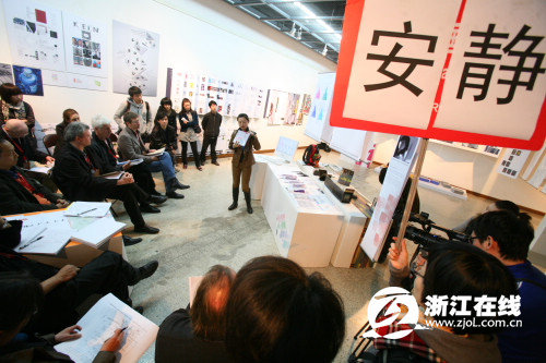 這是今天下午在中國(guó)美院美術(shù)館中德碩士CDK項(xiàng)目的答辯會(huì),參加答辯的碩士由中國(guó)美院和柏林藝術(shù)大學(xué)合作培養(yǎng)。用網(wǎng)絡(luò)的話說(shuō),這是一個(gè)很開(kāi)放而且酷斃了的畢業(yè)答辯會(huì),堪稱中國(guó)史上最牛。作品也很有意思,比如說(shuō)“美院象山校區(qū)導(dǎo)向標(biāo)志設(shè)計(jì)”,“杭州地鐵標(biāo)識(shí)設(shè)計(jì)”……大多設(shè)計(jì)和我們生活息息相關(guān),甚至和杭州這個(gè)城市很合拍,看了展覽你可能對(duì)現(xiàn)有的一些城市細(xì)節(jié)不滿。