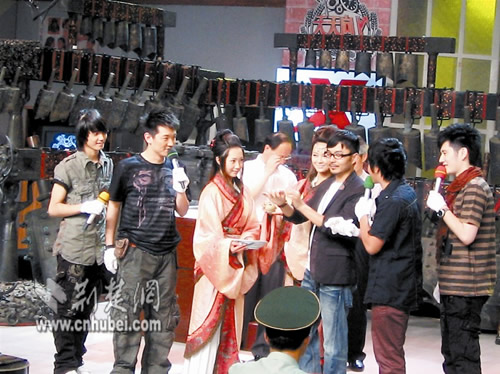 19日,在湖北出土的六件重量級文物——越王勾踐劍、曾侯乙編鐘以及雙耳金杯等,一齊亮相湖南衛(wèi)視的熱播欄目《天天向上》的錄播現(xiàn)場。汪涵、歐弟、田源、錢楓和韓國明星小五,以其一貫的幽默、活潑的主持風(fēng)格,把沉重靜謐的文物活靈活現(xiàn)地推介給了電視觀眾。
