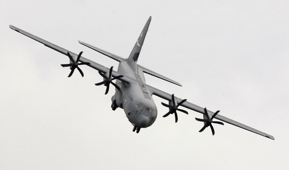 圖為美軍C-130J大力神運輸機(jī)進(jìn)行飛行表演。