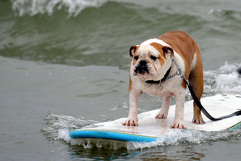 小狗沖浪比賽 讓人忍俊不禁