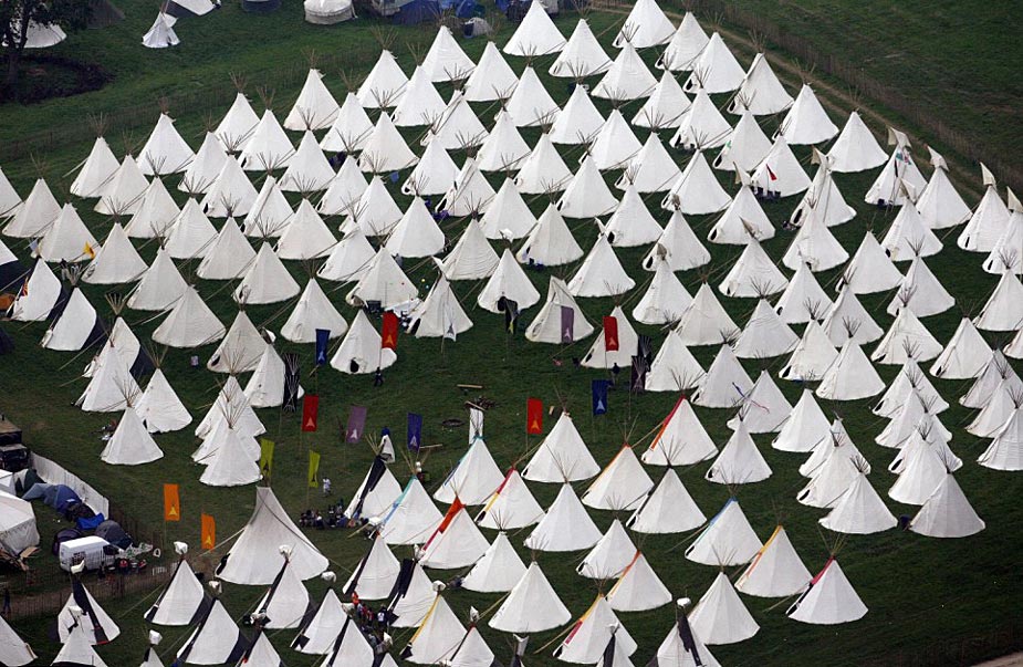 2009年格拉斯頓伯里音樂節(jié)在英國薩默塞特舉行,前來參加活動(dòng)的14萬樂迷在宿營地搭起密密麻麻的帳篷。格拉斯頓伯里音樂節(jié)是世界上規(guī)模最大的戶外音樂節(jié)之一。