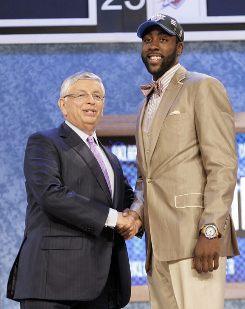 來自亞利桑那州立大學(xué)的哈登以第三順位被俄克拉荷馬雷霆隊(duì)選中。