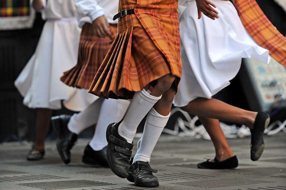 2009年7月1日,澳大利亞當(dāng)?shù)氐奶K格蘭籍男女老少,頭插羽毛、身穿格子裙、吹著蘇格蘭風(fēng)笛來到悉尼市中心,慶祝屬于他們的節(jié)日“蘇格蘭格子日”。