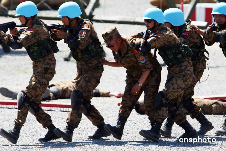 7月3日,中國和蒙古首次舉行維和聯(lián)合軍事訓練,以執(zhí)行聯(lián)合國框架下維和任務為背景,在北京地區(qū)某訓練場開展多種綜合演練。中新社發(fā) 宋吉河 攝