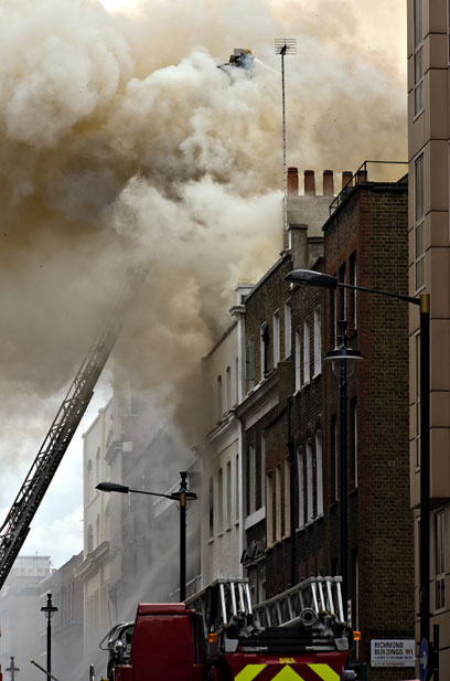 英國倫敦中部蘇豪區(qū)在當(dāng)?shù)貢r間10日下午2時左右發(fā)生火警,起火的5層高商業(yè)樓宇被嚴(yán)重焚毀,現(xiàn)場冒出大量濃煙,在倫敦市內(nèi)多處均清楚可見。消防部門派出12輛消防車及60名消防員進(jìn)行灌救。