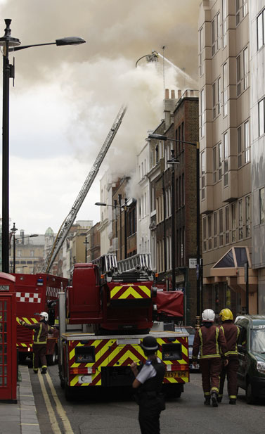 英國(guó)倫敦中部蘇豪區(qū)在當(dāng)?shù)貢r(shí)間10日下午2時(shí)左右發(fā)生火警,起火的5層高商業(yè)樓宇被嚴(yán)重焚毀,現(xiàn)場(chǎng)冒出大量濃煙,在倫敦市內(nèi)多處均清楚可見(jiàn)。消防部門(mén)派出12輛消防車(chē)及60名消防員進(jìn)行灌救。