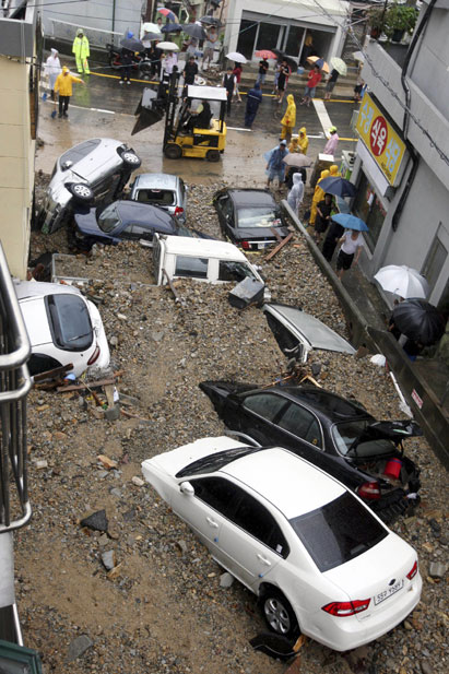 7月16日,因暴雨引發(fā)了泥石流,韓國(guó)釜山街頭一些車(chē)輛被沙石掩埋,目前人員傷亡情況尚不清楚。