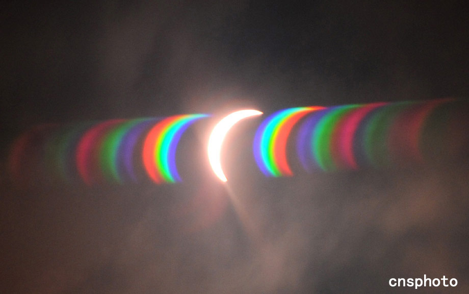 7月22日9時(shí)左右,江蘇連云港市上空出現(xiàn)日偏食奇觀。