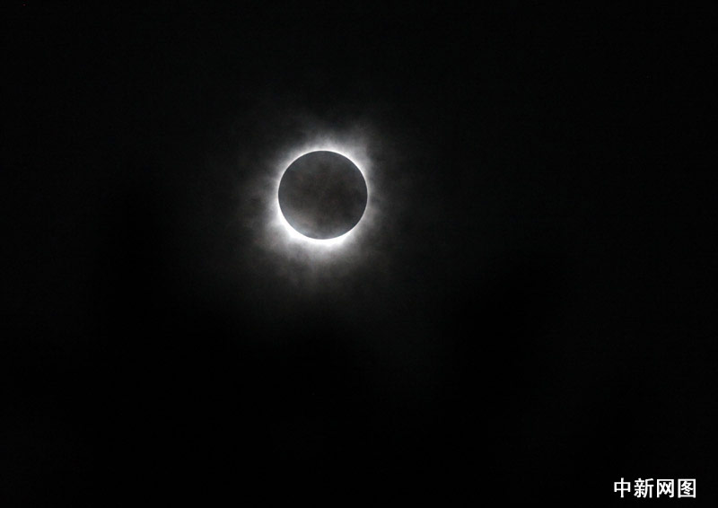 7月22日,在安徽中西部山區(qū),天空濃云逐漸變淡后,所拍攝到的日全食景象。中新網(wǎng)記者 孫自法 攝