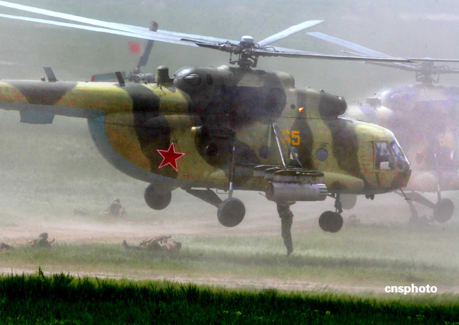 中國(guó)、俄羅斯兩軍總參謀長(zhǎng),7月23日上午到沈陽(yáng)軍區(qū)洮南合同戰(zhàn)術(shù)訓(xùn)練基地,觀看“和平使命2009”聯(lián)合反恐軍事演習(xí)。雙方以陸軍和空軍為主,中方參演部隊(duì)包括1個(gè)陸軍戰(zhàn)斗群和1個(gè)空軍戰(zhàn)斗群。俄方參演兵力包括1個(gè)陸軍加強(qiáng)摩步營(yíng)、1個(gè)空降突擊連和部分空軍兵力,雙方投入兵力兩千多人。中新社發(fā) 宋吉河 攝