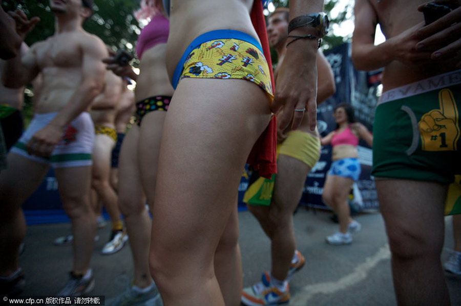 2009年7月,美國紐約,約200人參加了一場(chǎng)特殊的穿內(nèi)褲跑步大賽。選手們身穿內(nèi)衣褲從中央公園出發(fā)。比賽結(jié)束后,他們打破了“世界上人數(shù)最多的穿內(nèi)褲跑步大賽”的吉尼斯世界紀(jì)錄。