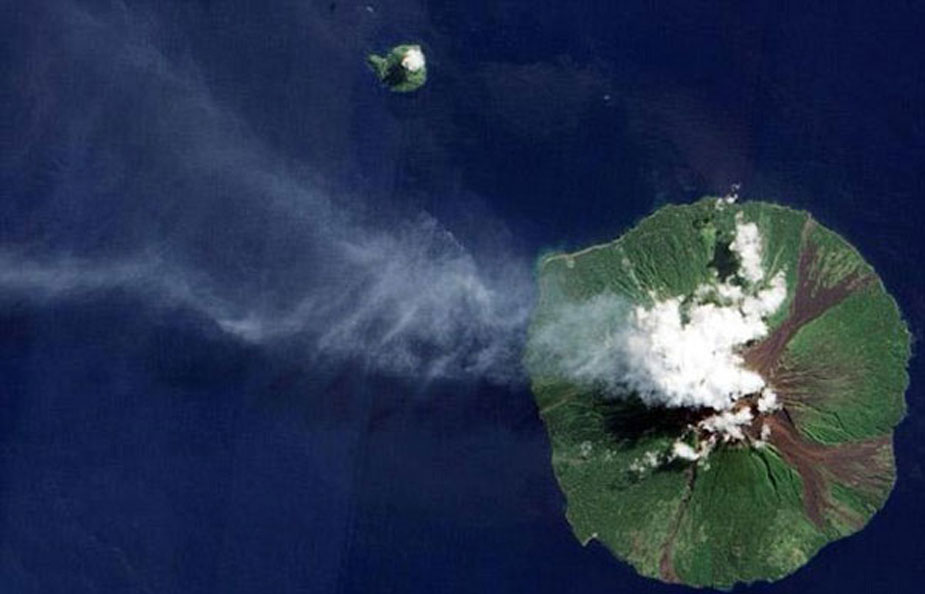 英國媒體近日公布了一組衛(wèi)星上拍攝到的地球自然景觀的照片,領(lǐng)觀者頗感震撼。圖為從衛(wèi)星上拍到的火山噴發(fā)。