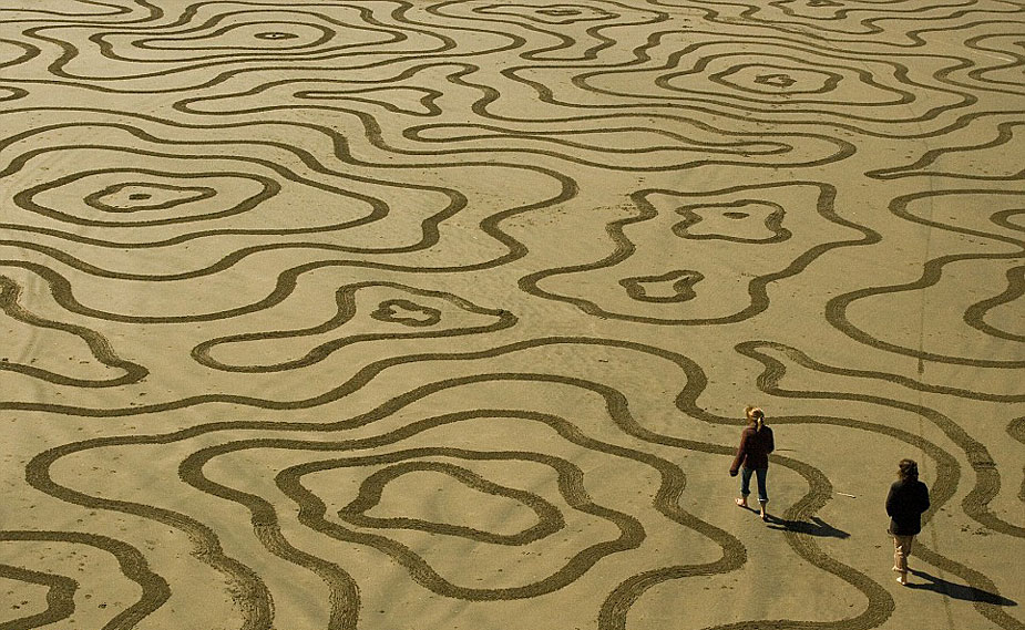 藝術(shù)家用耙子創(chuàng)作沙灘怪圈藝術(shù)