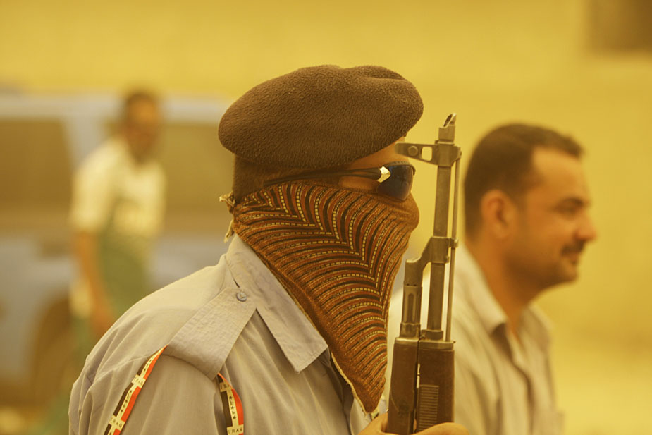 7月29日,伊拉克首都巴格達遭受沙塵暴襲擊。當?shù)鼐用窦娂娪酶鞣N物品保護住口鼻,以免吸入沙塵。