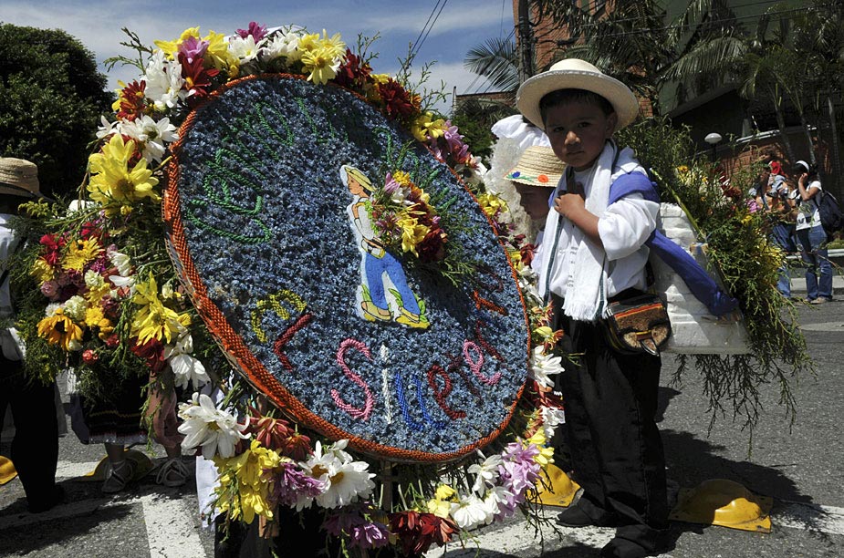 8月1日,在哥倫比亞麥德林,孩子們參加鮮花節(jié)游行。鮮花行業(yè)是哥倫比亞的主要產(chǎn)業(yè)之一。
