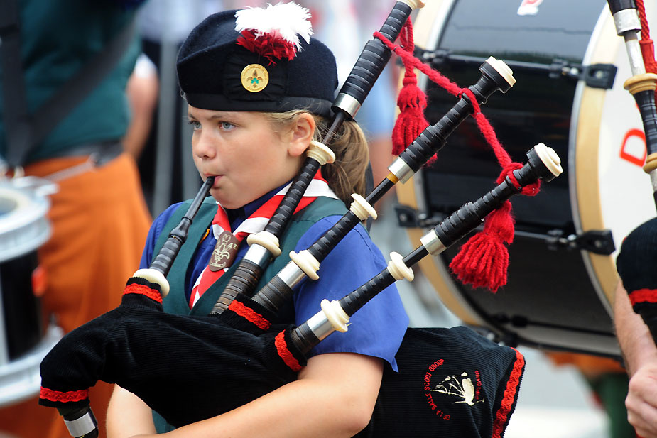 8月2日,拉薩爾童軍風笛樂團的一個小樂手在文化節(jié)上演奏風笛。