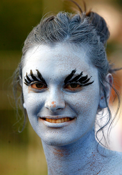 圖為參加狂歡節(jié)的人們?cè)谀樕线M(jìn)行“涂鴉”。