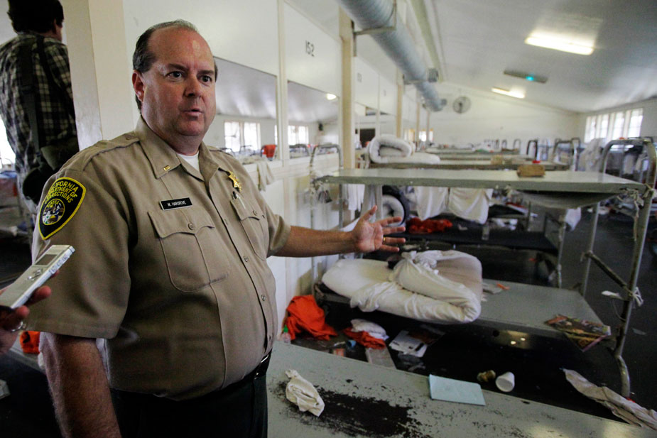圖為哈格雷夫中將描述損壞的奇諾監(jiān)獄宿舍。8月8日晚至9日凌晨,美國加州南部奇諾市發(fā)生大規(guī)模監(jiān)獄騷亂,截至目前,在250多名受傷的在押犯人中,仍有16名犯人在醫(yī)院接受治療。