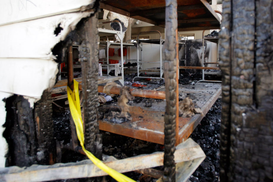 圖為燒毀的監(jiān)獄宿舍床鋪。8月8日晚至9日凌晨,美國加州南部奇諾市發(fā)生大規(guī)模監(jiān)獄騷亂,截至目前,在250多名受傷的在押犯人中,仍有16名犯人在醫(yī)院接受治療。